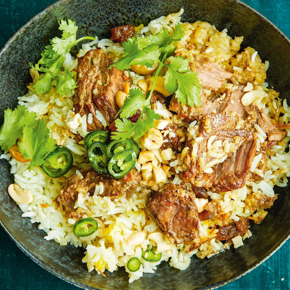 Tender on bone beef pieces cooked in a blend of Spices and Aromatic Rice